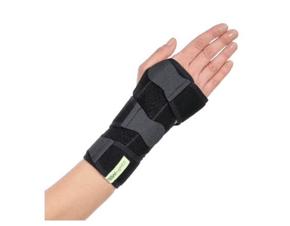 Bileğin nötral pozisyonda immobilizasyonunu sağlayan anatomik olarak şekillendirilmiş alüminyum desteği vardır.